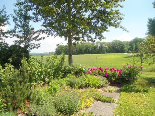 Unser großer Obst - und Blumengarten lädt zum Relaxen ein.