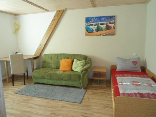 Die ca. 60 qm große Wohnung mit eigenem Eingang befindet sich ebenfalls im 1.Stock des Hauses und bietet Platz für max. drei Personen.