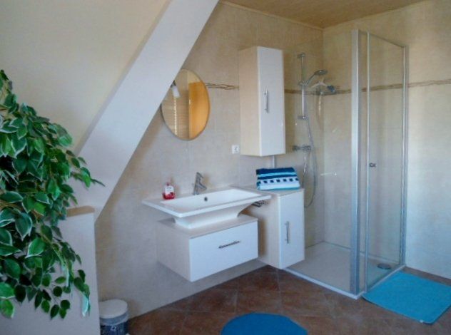 Großes geräumiges Bad mit Duschkabine, sowie separates WC.